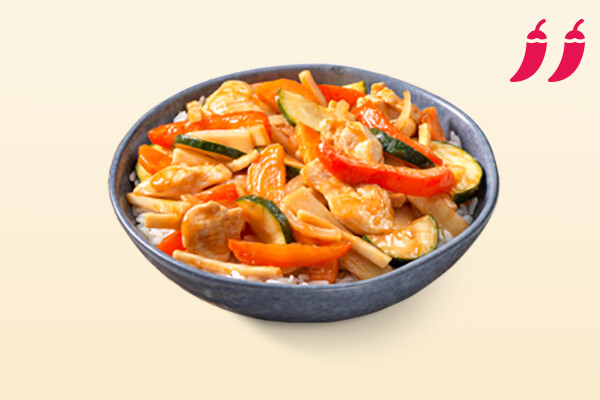 Koreaanse smaken met zachte kipfilet, courgette, ui, paprika, chinese kool, bamboe en wortel
