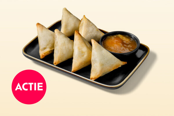 Indian samosa's vegan met een samosa chutney om in te dippen!